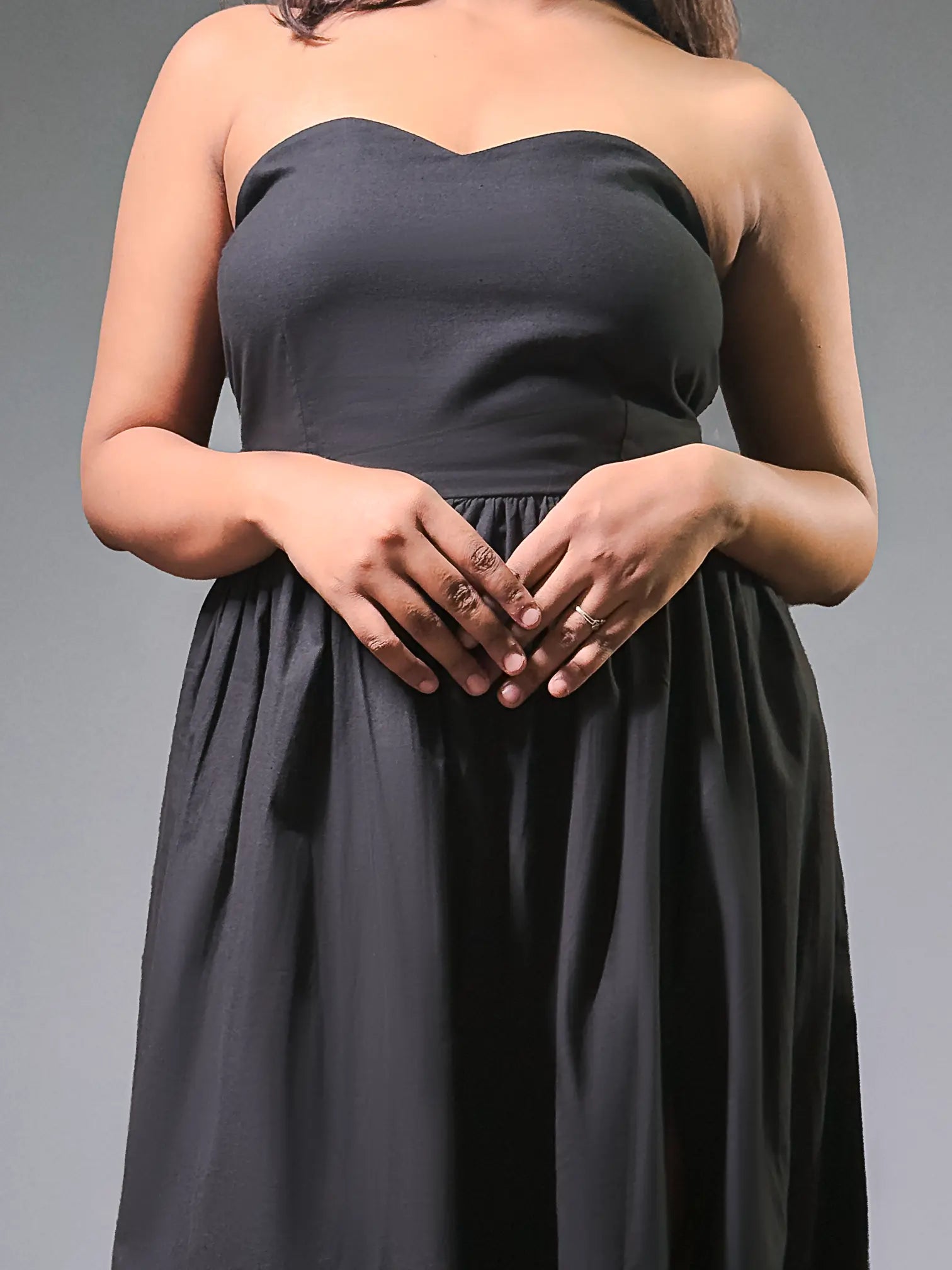 - Strapless sweetheart neckline for an elegant feminine look
