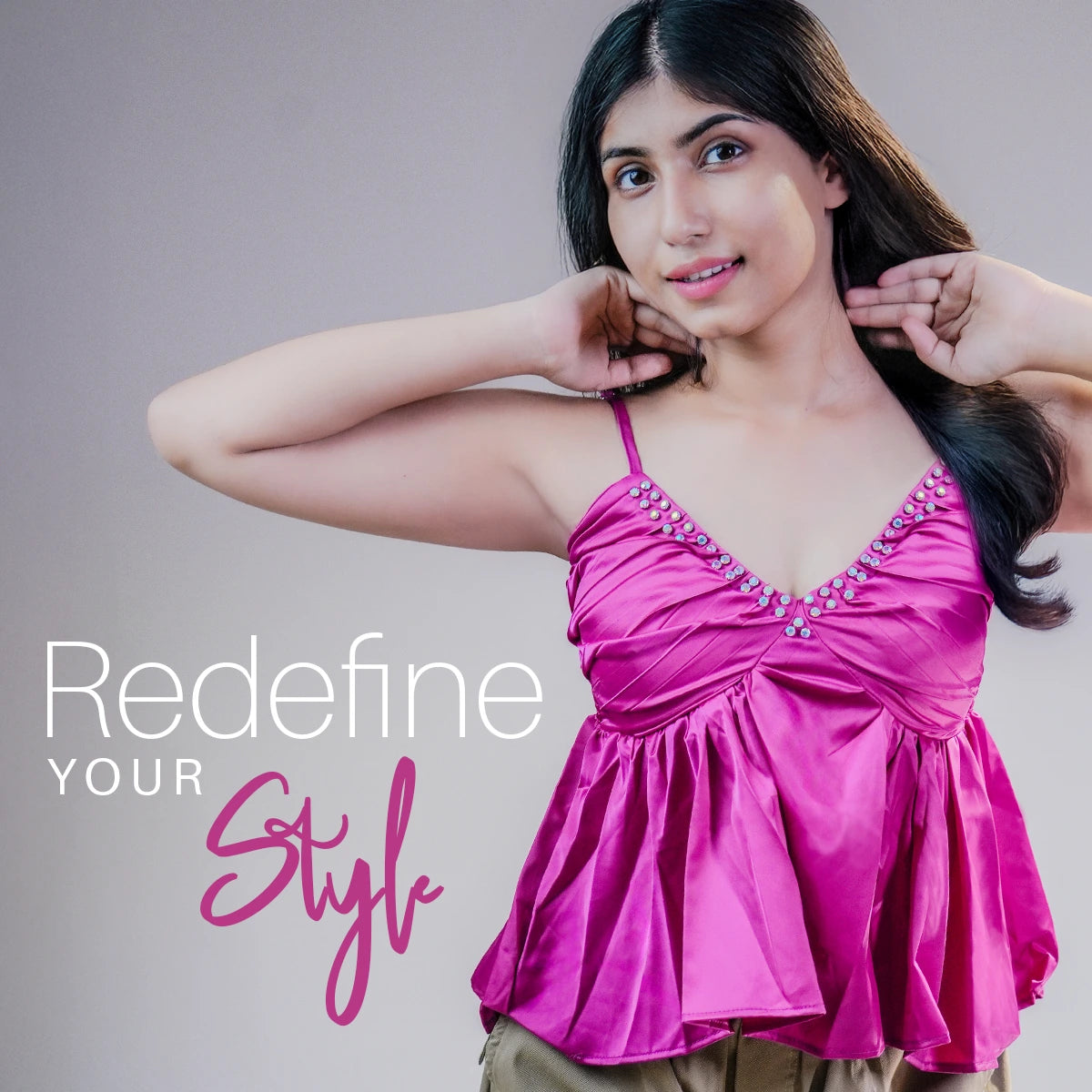 The infinity loop captures our journey from Vastram to Vogue - where we blend Indian textile heritage with bold, modern silhouettes. It reflects our belief that style grounded in tradition is always in motion, never out of date.